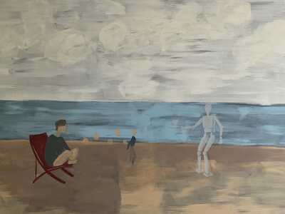 A work in progress, started out trying to visualize another planet with different lighting source. The robot barged its way in as an old prototype, the seated figure is an experiment in could I make it look convincing in an awkward pose. The crocodile of children is incomplete.